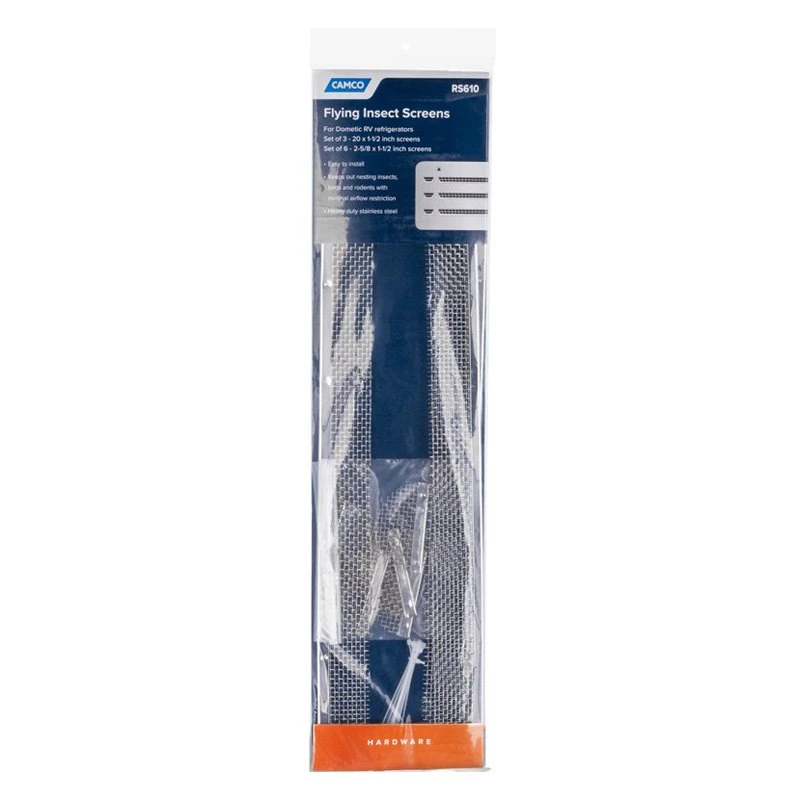 Refrigerator Vent Insect Screen by Camco®. Bring the comforts of your home to your motorhome with this top-notch RV appliance to make your camping experience more enjoyable and free of worries. It’s made to be compact and lightweight to suit your RV lifestyle while delivering rugged strength and durability to withstand the extensive use and the elements. Designed to add more convenience and practicality to your RV, this appliance provides an economical and efficient way to tackle your daily routines.