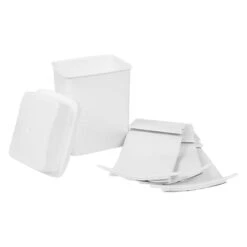 White Grease Storage Container by Camco®. Provides a convenient location to dispose and contain cooking grease. It helps stop your RV or marine kitchen drain from getting clogged. After cooking, simply pour the cooking grease directly into the foil-lined bag inside the container. The foil liner bag can hold liquids up to 200-degrees Fahrenheit. Once emptied, the bin will lock-in any odors until the bag is full and tossed in the trash.