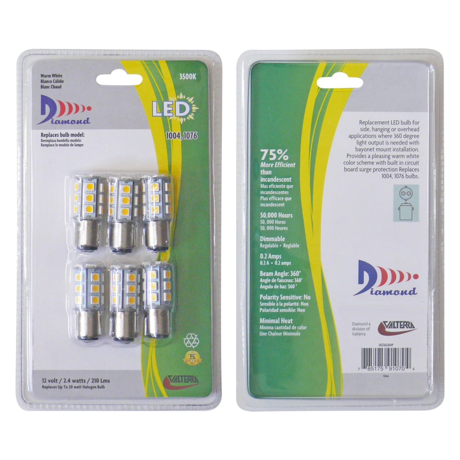 210 lm 20W Warm/ Soft White Tower LED Bulb (1076) by Diamond Group®. 6 Pieces. When it’s dark outside, you want to spend a cozy evening inside your RV. And it’s almost impossible without functional indoor lighting. This superior product is meant to provide excellent lighting performance and ensure long, dependable service. It was produced using advanced materials for high effectiveness and uncompromising value. Invest in quality products we provide and benefit from reliable lighting solutions.
