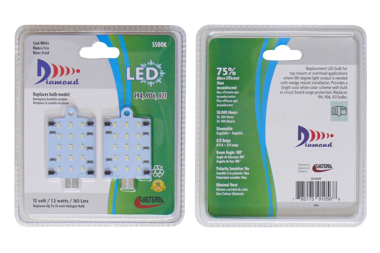 Daylight/ Bright White LED Bulb (921) by Diamond Group®. 2 Pieces. When it’s dark outside, you want to spend a cozy evening inside your RV. And it’s almost impossible without functional indoor lighting. This superior product is meant to provide excellent lighting performance and ensure long, dependable service. It was produced using advanced materials for high effectiveness and uncompromising value. Invest in quality products we provide and benefit from reliable lighting solutions.