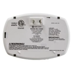 Basic™ Plug-in White Carbon Monoxide Alarm with Battery Backup by First Alert®. The First Alert CO600 Plug-In Carbon Monoxide Alarm utilizes an electrochemical carbon monoxide sensor. This carbon monoxide detector plugs into any standard electrical outlet and features a low battery light to alert you when the battery power is low. When carbon monoxide levels become elevated, a loud 85-decibel alarm alerts you to the threat.