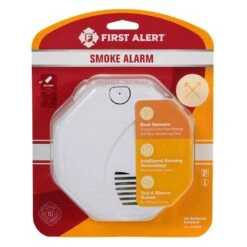 Battery White Surface Mount Smoke/Fire Alarm with Smart Sensing Technology by First Alert®. The First Alert Ultimate Protection Smoke and Fire Alarm provides an early warning. The intelligent sensing technology in this alarm is designed to cut down on nuisance alarms from cooking smoke or other common false-alarm triggers. A single button both silences and tests the smoke detector for simple operation. The battery-operated fire detector can be easily installed without wires.
