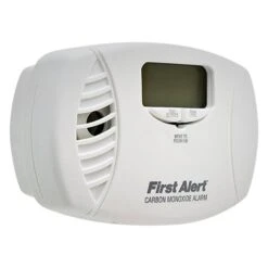 Plug-in White Carbon Monoxide Alarm with Battery Backup & Digital Display by First Alert®. The First Alert CO615 Dual-Power Carbon Monoxide Plug-In Alarm alerts you to dangerous carbon monoxide. This carbon monoxide detector operates on a dual-power system with battery backup for continuous monitoring, even in the event of a power outage. The backlit digital screen tells you at a glance what the carbon monoxide and power levels are. The CO monitor also features a convenient test and silence button and an end-of-life warning that lets you know when it is time to replace the alarm.