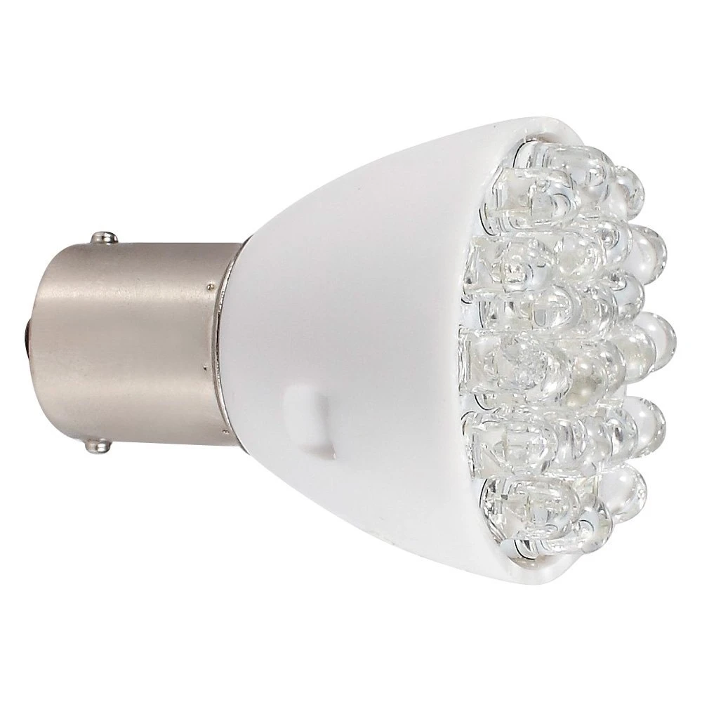 BA15S Base 106 lm Cool White RP11 LED Bulb (1141) by Green Long Life®. Applications include 12 and 24 VDC auto, marine, RV, and military vehicles. 1.1 Watts. 24 High Power DIP LEDs. Luminous Flux 106 lumens. Beam Pattern 120 degrees.