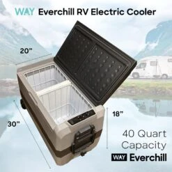 If you want a spacious, electric cooler for your time away from home, in the RV, or out on the road for cross country trips, the Everchill 40 Quart 12 Volt Electric Cooler is the one you need!