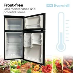 The Everchill by Way 4.5 Cubic Foot 12-Volt model is a superb minifridge option for RV owners who are ready to add 12V cooling to their home on the road. This model is great for a more compact vehicle with 4.5 cubic feet of internal storage and refrigerator and freezer compartments.